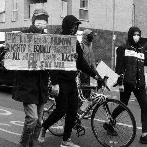 These photos were taking in Battersea when a few off-shoots from the Parliament march came through Battersea, and during the Vauxhall demonstration outside the US embassy, where the atmosphere was electric and demanding change to happen now.